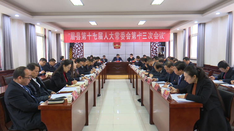 11月30日,眉县第十七届人大常委会第13次会议在县人大机关召开。会议审议了县政府关于农村集体经济助推脱贫攻坚和城市重点项目建设情况的报告,学习了《习近平总书记关于坚持和完善人民代表大会制度重要思想》,辅导了新修订的《宪法》。会议由县人大常委会主任王春社主持。
