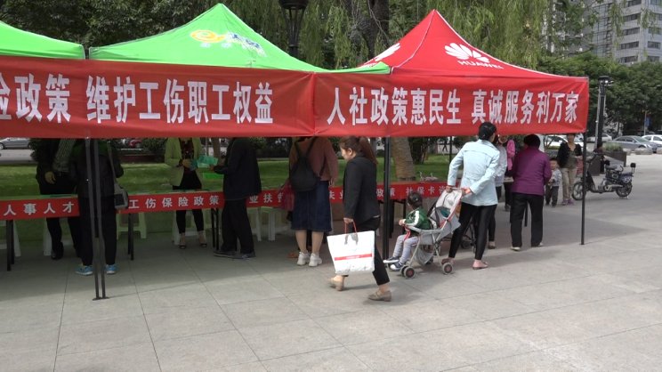 5月20日,眉县人社局组织工作人员在张载广场集中宣传人社扶贫和社会保险政策。同时,眉县税务局对社会保险费降费及征缴有关政策进行积极宣传。