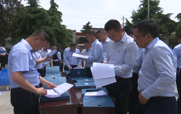 与会人员现场观摩金渠镇宁渠村和首善街办王长官寨村“双基联动”工作站,翻阅学习支行农户小额贷款建档授信资料。宁渠村、王长官寨村负责人介绍了村组基本情况,以及村两委如何与农商行深度合作开展“双基联动”,发挥基层党组织战斗堡垒作用,完成农户小额贷款“整村推进”工作。