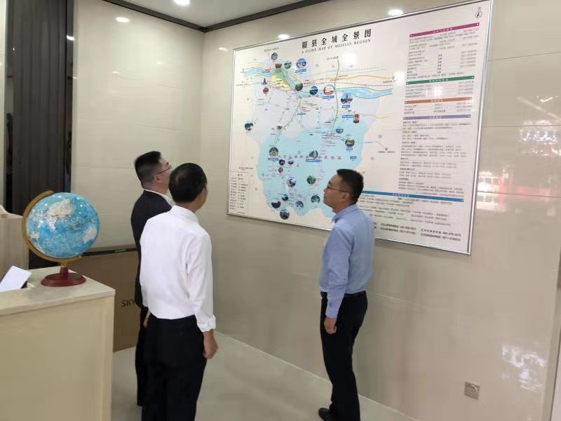 陈昌煦一行实地查看了中心大厅、游客服务台、全域全景图、眉县A级景区展示区等地,认真听取了相关介绍,并对旅游集散中心建设的细节和内部布置工作进行具体指导,提出了改进意见和建议。
