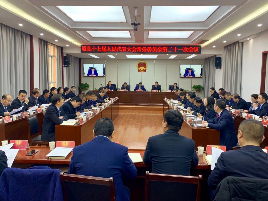 12月31日,眉县第十七届人民代表大会常务委员会第21次会议召开。会议分别听取和审议了县政府关于2019年县级财政预算调整方案(草案)的报告、2018年度县级财政预算执行审计查出问题整改情况的报告、行政事业类国有资产管理情况的报告和县十七届人大三次会议代表建议案办理情况的报告,通过了有关人事事项。会议由县人大常委会主任王春社主持。