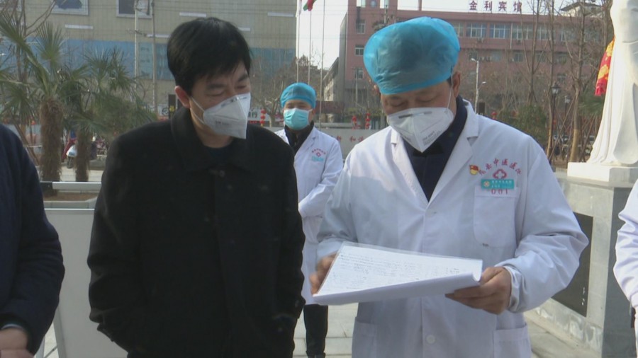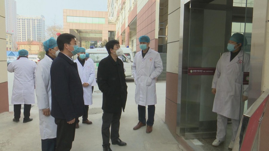 1月31日上午,县长叶盛强检查县中医医院、人民医院和县集中隔离观察点疫情防控工作落实情况,副县长王喜平一同检查。