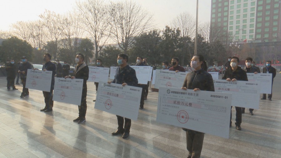 2月11日,我县举行爱心企业及个人捐赠仪式,12户爱心企业及2名爱心人士为我县捐赠202.6万元的防疫资金,其中北京明伦公益基金会捐赠100万元。县领导刘志生、叶盛强、王春社、杜勇社、王恩社参加捐赠仪式。