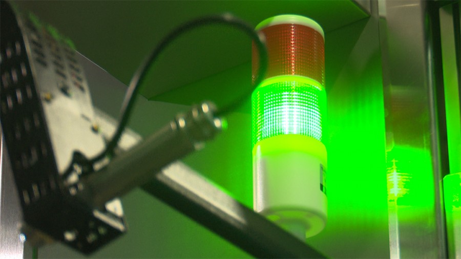 晚上9点,在陕西金姆特医疗科技有限公司,记者看到工作人员正在加班加点对智能测温门进行最后的检测调试。当受检人员在测温门右侧刷完身份证经过测温门时,体温小于37.5℃,绿灯闪烁,即可通过,当温度大于37.5℃,红色信号灯闪烁,并发出声音提示给检测人员。