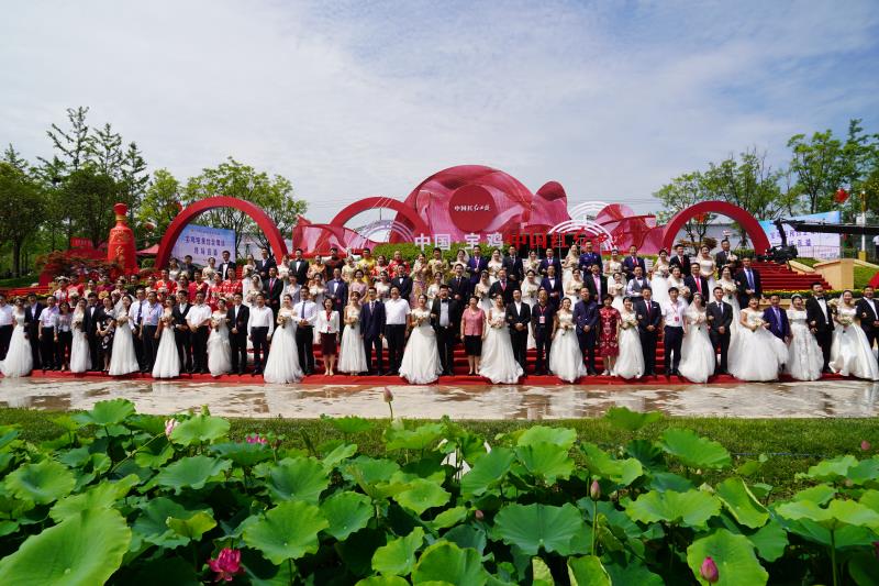 6月23日,由中共宝鸡市委宣传部、宝鸡市妇女联合会主办,眉县人民政府、共青团宝鸡市委协办的中国·宝鸡“中国红 红西凤”所谓伊人在水一方渭河百里花海集体婚礼,在宝鸡市眉县千亩荷塘举行。来自宝鸡各个行业的50对新人在这里喜结连理,情定终身。陕西省妇联副主席林海君,团省委研究中心副主任吉延萍,市领导吴铁、刘荣贤、武勇超、刘焕勋、张田力等,县领导刘志生、叶盛强、杜勇社、等参加活动。