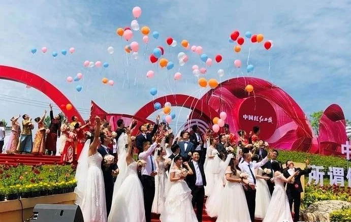 50对新人在渭河百里花海千亩荷塘喜结连理 |
