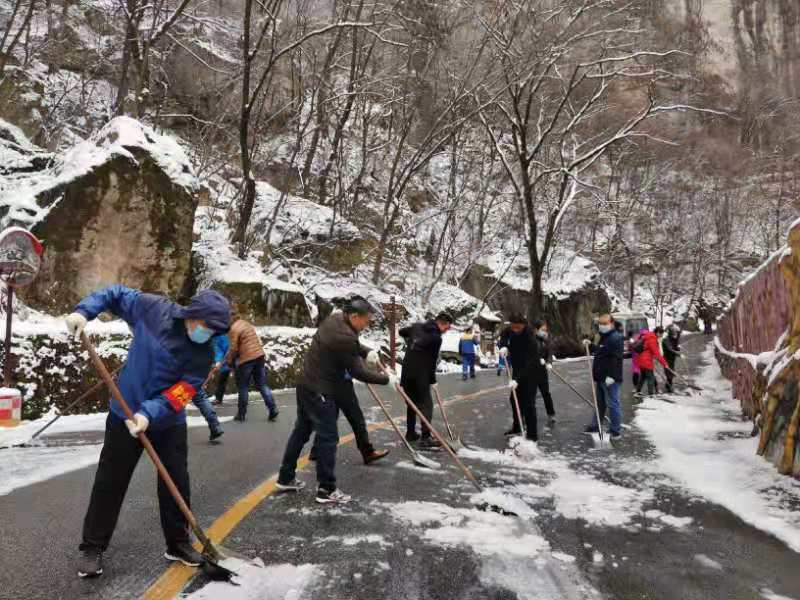 从莲花峰瀑布到泼墨山景点,干部职工铲雪除冰的身影随处可见,大家不畏严寒,挥舞着铁锹,积极投身到铲冰行动中,有的铲,有的推,齐心协力配合默契,干的热火朝天。据了解,本周内将恢复景区道路畅通,为了让游客安全到达景区,景区工作人员采取24小时监测天气和道路安全隐患排查措施,对信息进行及时发布。(记者 汶文华)
