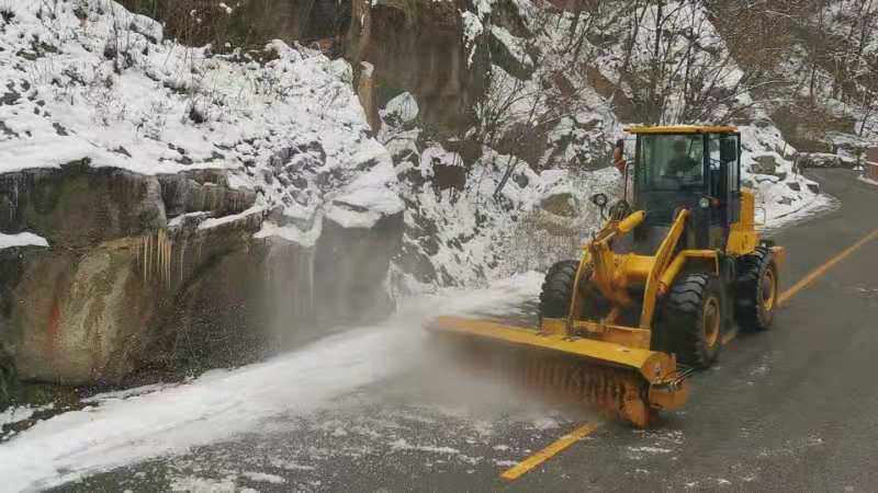 近日的一场降雪,给太白山景区带来了玉树琼枝的美丽景致。由于景区温度低,出现了积雪和结冰现象,使通往太白山景区的道路受阻。为了让游客能安全顺利进入景区,景区出动干部职工及除雪装备,对结冰路段进行清理。