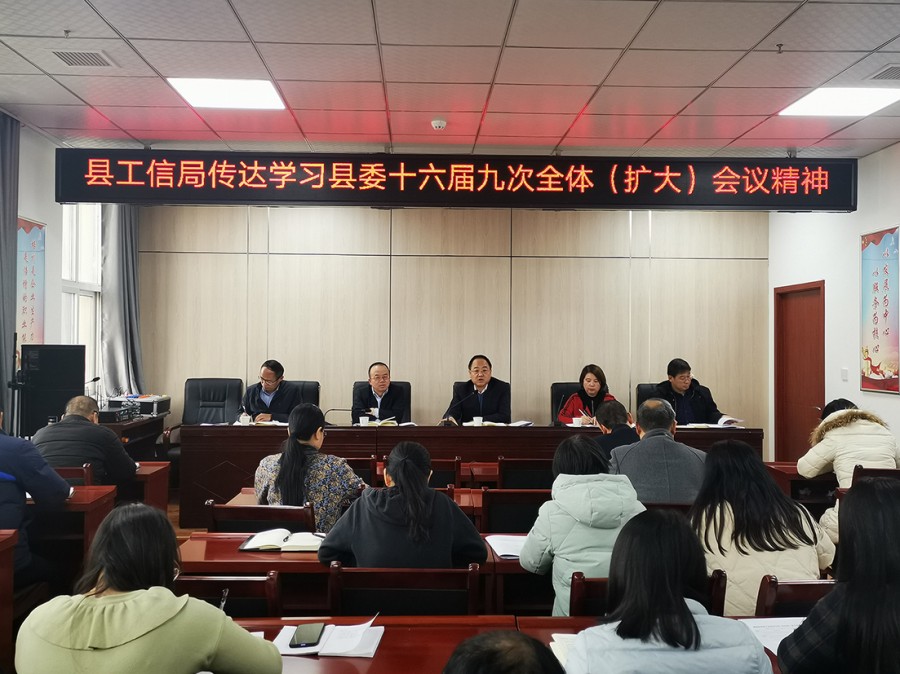 1月15日下午,县商务和工业信息化局机关召开专题会议,传达学习县委十六届九次全体(扩大)会议精神。
