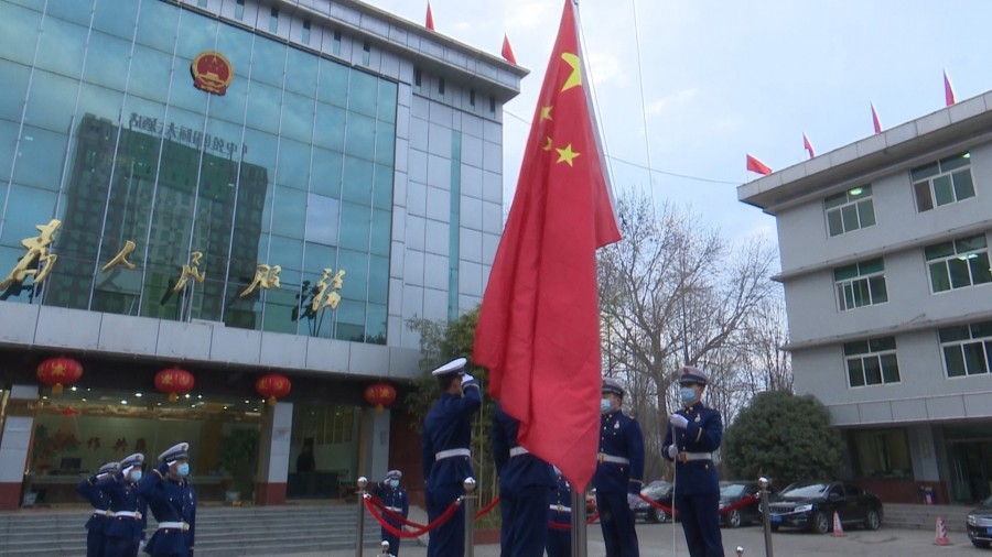 2月18日,农历正月初七,春节假期后上班第一天,我县在县机关大院举行升国旗仪式,所有在家的四大班子县级领导、机关大院干部职工参加活动。