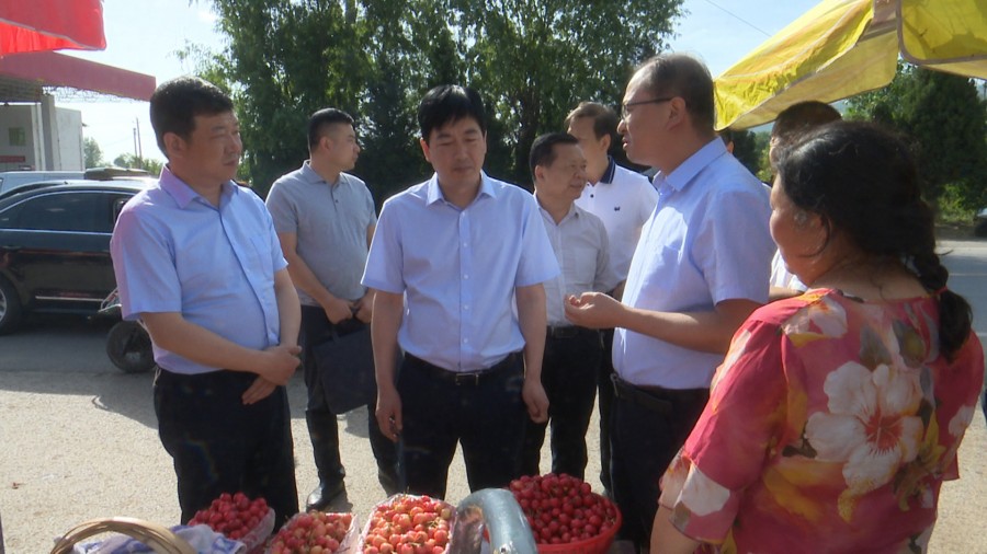 5月20日县长叶盛强调研齐镇樱桃产业发展及销售情况。县政府副县长祁亚军、县政府办、农业农村局负责人一同参加调研。