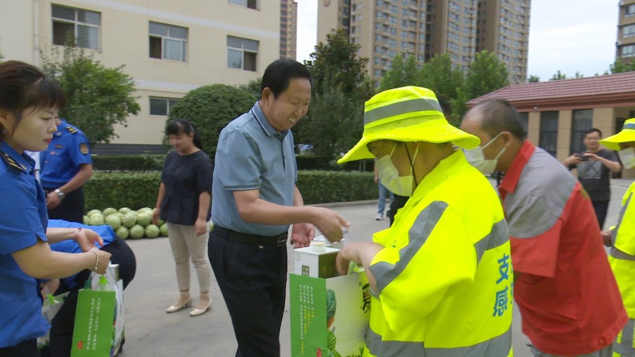 刘志生一行将慰问品一一送到环卫工人手中,对大家在我县城市建设中付出的辛勤劳动表示感谢,叮嘱大家一定要做好防暑降温措施,注意劳逸结合,时刻把劳动安全和身体健康放在首位,确保在安全的情况下开展工作。