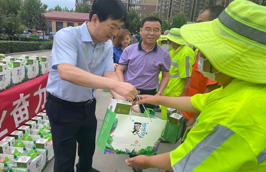 7月28日,县领导刘志生、叶盛强、杜勇社、袁宏斌、康振峰来到县环卫站,亲切慰问300多名环卫工人,为他们送上“夏送清凉”慰问礼包和降暑用品。标志着县总工2021年“夏送清凉”活动会正式启动。