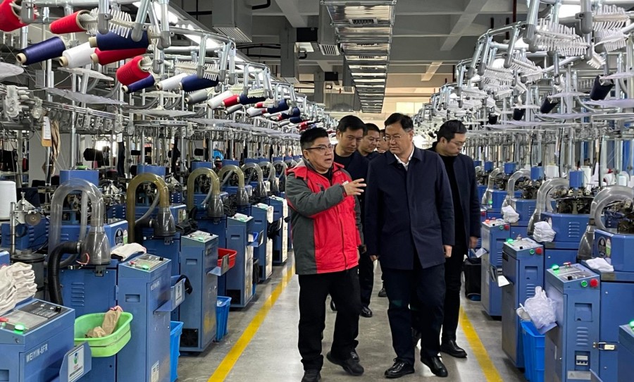 在安徽尧舜智能袜业有限公司,实地考察针织产品生产线项目,详细了解了公司发展、生产销售及产业布局等情况。张小平向企业介绍了我县经济及纺织产业发展情况,重点推介了常兴纺织工业园,并就在眉投资制袜生产线项目与企业方深入交流。公司负责人表示,眉县纺织产业优势明显、发展潜力巨大,随后将尽快来眉考察洽谈,加快项目推进。