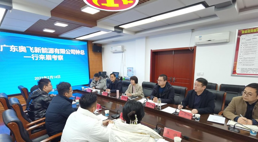 2月14日,广东奥飞新能源有限公司董事长钟祥跃一行来眉考察。县委书记王继萍召开座谈会并讲话,副县长田皓园主持会议。