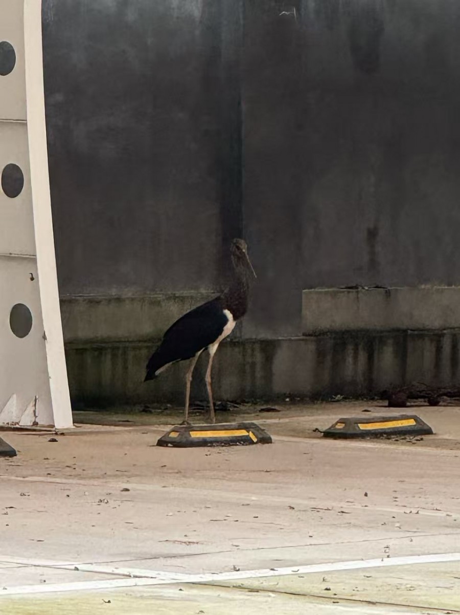 当日上午10时,槐芽镇一名工作人员在单位院内整理物资时,瞥见办公楼旁边的场地上落着一只外形特别的鸟类:通体羽毛呈亮黑色,喙长而直,体态修长优雅。“看着不像常见的鸟,喙直腿长的样子,有点像之前宣传过的珍稀动物。”工作人员立刻停下手中工作,悄悄观察并拍照记录,同时第一时间将所见告知镇林业站。