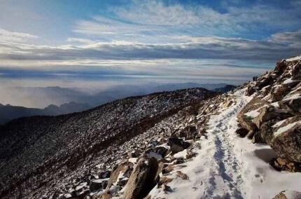 路边,我们发现了斑斑点点的白色,凑近一看,是雪。虽然只有小小的一块,我们已经很欣慰了,毕竟这是一个无雪的冬季。至于为何只有小小的几块,我们也是百思不得其解。大概是某一天调皮的山风携着水珠经过,一不小心漏掉几个,由于山里的温度很低,所以落到地上就成雪了吧。
