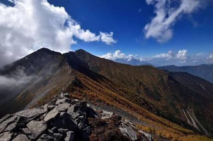 沿石阶而上,前行不多远,就可以看到石头堆叠起来的房子的旧基。也不知过了多少年,石头经历时光的冲洗与磨砺,已经满身斑驳了。不过这都不要紧,最主要的是这些石头却能让人从这旧的痕迹中遐想:当年这家的主人,家境如何的殷实,生活如何的悠闲自在,常年听风的私语、鸟的欢唱,看云起云落、涧水潺潺、百花竞艳,嗅花和各种植物的芬芳,欣赏着自然的鬼斧神工,偶尔有故人拜访,举樽把酒,追月逐云,一起谈论着“采菊东篱下,悠然见南山”惬意。
