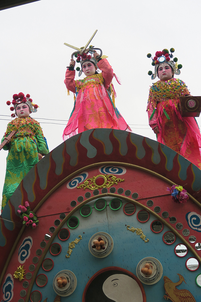 武家堡的芯子社火还特别注重人物形象和表演阵式。社火表演妆扮前,谋师(策划师)根据自身实力,安排社火内容及转数,再由画妆师逐个画脸,男角威风森煞,旦角清秀鲜亮,讲究的是形象逼真,栩栩如生。然后穿上社火装,或骑马或坐车,或上芯子绑扎,按故事情节搭配,少则三人,多则五至六人为一转社火故事排列,前面有探马开道,其后有几十面彩旗鼓乐队,社火列队而行,蔚为壮观。每年春节期间,武家堡芯子社火都要在县城进行大型社火游演,已经成为眉县民间艺术活动的一个特色品牌。