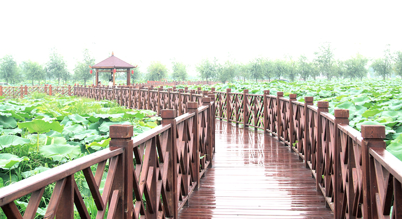 顺着木板铺起来的弯弯曲曲、拐来拐去的羊肠小路行走,处处荷花向你颔首微笑。粉的,红的,白的,各种各样的颜色竞相开放。喜欢荷花,喜欢它出于污泥而不染的品格,更喜欢它们高雅洁净的美丽。