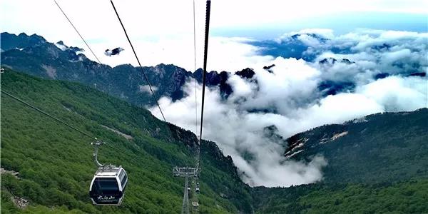 八月的太白山山谷之间到处都是空气的沁凉清香,摆渡车经过了莲花峰、泼墨山,世外桃源直到红桦坪,游客可以在此乘坐天下索道,也可继续前行,到下板寺乘坐拂云阁索道。