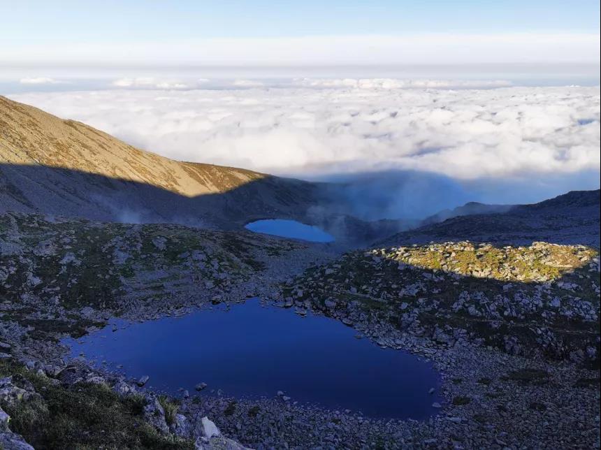 “秦岭主峰地,仙境太白山”。太白山从山下到山上一路走来,你会有一种人间天上,从人间乐土到天境仙界的感觉。当乘天下索道穿云破雾,凌空而上,到达天圆地方,看到拜仙台、啸天犬,我们仿佛已真的进入仙境,山间云蒸霞蔚,山巅山高我为峰。从天圆地方到太白山顶拔仙台还有长长的路要走。“其漫漫路将远兮,吾将上下而求索”。海拔3500米以上的太白山已与山下境分两界,景色殊异。山路两边只剩下低矮的灌木高山杜鹃、苔藓和一些不知名的小花。满山遍野的石头,第四纪冰川遗迹构成的石河、石海成了山顶的主色调。民间传说这些石河、石海是封神演义中姜子牙攻破三宵摆布的黄河阵。当你站在石河边静思,仿佛能听到阵阵斯杀声呼啸而来。沿着石头铺就的山路会经过小文公、大文公,供奉着韩愈和大太白、二太白、三太白诸神。到达好汉坡时,一段漫长的陡坡让人望而生畏,加上高山缺氧,对每个想登顶太白山的人都是毅力和体力的考验。在妻子和同学的鼓励下,我和她们一起经过一段艰难的跋涉之后,终于到达好汉坡顶端,我喘着粗气喊了声:不到长城非好汉!好汉坡之后,登顶的山路相对平缓。爬上九重石海,走过大石河,再登一大梁,眼前就是万仙阵,据说这里成千上万的玛尼石堆、石塔是众仙在此等候姜子牙拔仙台封神,因为正前方目光所及,就能看见太白山之巅、秦岭之巅拔仙台。此等景致,一念可天马行空,一念可顿离红尘。再翻过两三道梁就到了大爷海,太白山最大的一颗明珠,高山冰碛湖,静谥、清澈,尤如一面镜子镶嵌在太白山顶,让人不忍心去走近,打扰她的宁静。大爷海湖面上有一种鸟,时刻驻足在湖边的石头上,若发现湖面上有一点树枝、枯叶,立即会飞到湖面用嘴将杂物衔走,让湖面始终干净如初,这种鸟因此也被人们称为“净水鸟”。在太白山顶像大爷海这样的冰碛湖有几个:二爷海、三爷海、玉皇池。从大爷海边攀登而上,手攀脚蹬,才能到达太白山顶跑马梁,一处平坦的山地,上面是拔仙台,传说是姜子牙封神的地方。“会当凌绝顶,一览众山小”。站在秦岭最高峰太白山顶拔仙台3771.2米的高处,俯瞰秦岭,群山臣服,绵延不绝。仰望天空,触手接天,云在脚下,飘飘欲仙。作为一个人,似乎真有一种得道成仙的感觉。唐诗人王维在《终南山》中云:“太乙近天都,连山接海隅。白云回望合,青霭入看无。分野中峰变,阴晴众壑殊。”是对太白山的传神描绘。“太白积雪六月天”,作为陕西八景之一,最能体现的地方就在拔仙台。从科学角度看,太白山海拔高,气候寒冷,山顶积雪时间长,有六月积雪的自然奇观。从神话角度说,太白金星其精坠此地,化为美玉,给人以白雪皑皑幻觉。一番神游之后,疲惫的身躯告诉我,自己还是一凡人,需要返回。于是,我们拖着沉重的脚步下山了。