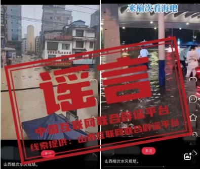 真相:近日,有网民在社交平台发布视频并配文称“山西榆次水灾现场,来榆次看海吧”,视频画面显示,洪水漫过街道,行人趟水行走,引发关注。据山西省晋中市榆次区有关部门核实,属地未出现汛情,该视频是将近日发生在外地的水灾视频张冠李戴,标注为“山西榆次”发布,为不实信息。(来源:“山西网络举报”微信公众号)