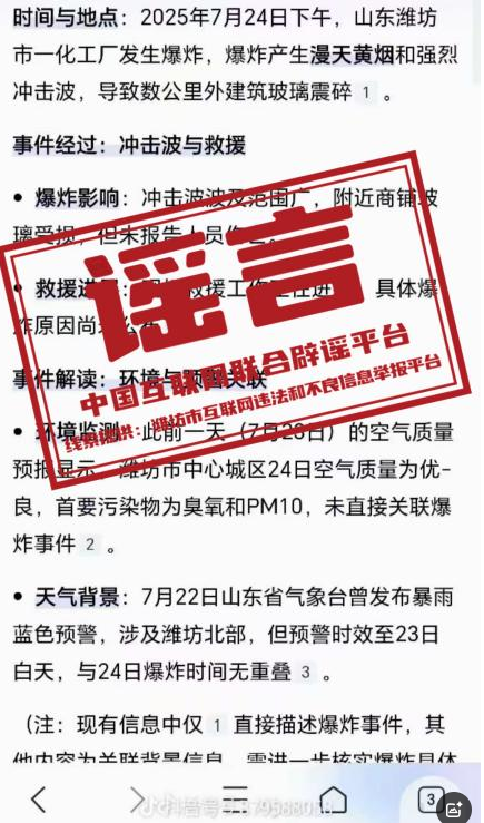 辟谣:“潍坊市发生爆炸事故”?当地回应系谣言