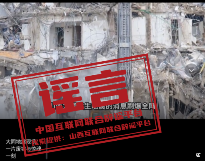 真相:近日,有网民发布视频称山西“大同地震现场:一片废墟与惊魂一刻”。据属地相关部门核实,此视频为不实信息。此次地震未造成人员伤亡和财产损失,网传内容系网络图片和视频拼凑。据中国地震台网正式测定,2025年8月4日9时33分,在山西省大同市云州区(北纬39.94度,东经113.45度)发生3.3级地震,震源深度8公里。大同市云州区杜庄乡震感较强,平城区、云冈区、浑源县等地有轻微震感。(来源:“山西网络举报”微信公众号)