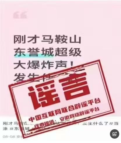 真相:近日,安徽省马鞍山市一网民发文称“刚才马鞍山东誉城超级大爆炸声!”,并评论“跟爆炸了一样”,引发群众恐慌。经当地应急管理局和消防救援局核实,该区域近期未发生任何爆炸事故,网传信息纯属谣言。请广大市民不信谣、不传谣,发现涉灾涉险信息及时向官方账号核实。(来源:“安徽省互联网违法和不良信息举报”微信公众号)
