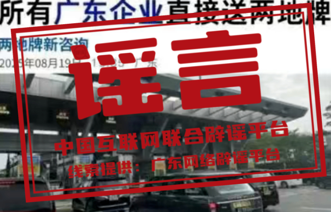 真相:近日,网络上一则题为“8月起,所有广东企业直接送两地牌”的文章,引发关注。经广东交警核实,该说法为谣言,切勿轻信。