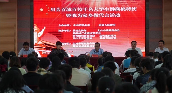 启动仪式上,来自线上的大学生代表为活动的召开发来了祝福视频,两名大学生代表做了发言,县政府副县长李倩从谈感想、眉县产业发展情况、为什么要让大家代言以及怎样为眉县发展代言四个方面,给即将踏上行程的大学生们提出了要求;县委常委、宣传部长袁宏斌宣布眉县百城百校大学生猕猴桃特使暨我为家乡做代言活动启动。