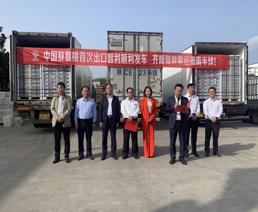 9月23日,第九届中国(国际)猕猴桃产业发展大会举办期间,陕西首批猕猴桃从宝鸡市国家级(眉县)猕猴桃产业园区发往智利,开启了中国猕猴桃出口南美洲的新篇章。