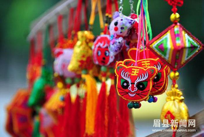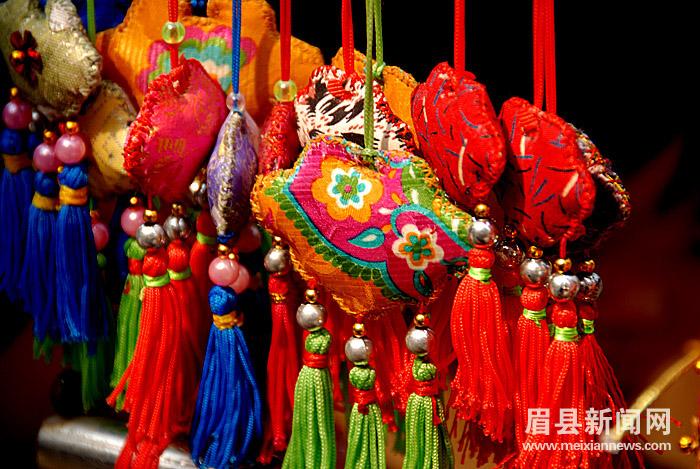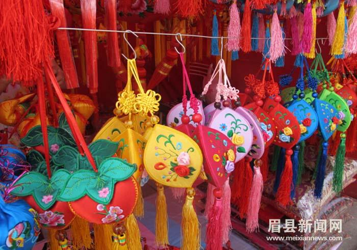 随着端午节的临近,除了粽子开始热销外,作为应景商品的香包、花绳也开始走俏。6月8日,记者在眉县荣华路的街头看到,各式各样的香包、编织精美的五彩绳等饰品应有尽有,吸引了许多市民驻足挑选购买。