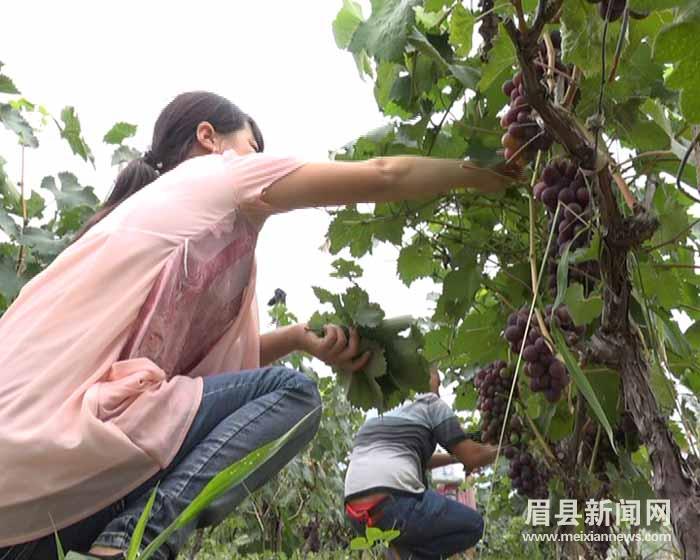 6月21日上午,记者来到汤峪镇八庄村六组赵师傅家的葡萄大棚里,刚一走进园子就被淡淡的果香所吸引,一排排郁郁葱葱的葡萄枝蔓上结满了大串大串的葡萄,葡萄颗粒饱满圆润,晶莹剔透,让人忍不住想去尝一个。在大棚里,赵师傅和妻子张大姐正在棚内采摘葡萄。