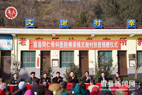 2016年12月8日上午,眉县同仁骨科医院医疗精准扶贫捐赠仪式在横渠镇文谢村村委会召开,县镇村多名领导出席捐赠仪式并致辞、爱心企业陕西天蓬肉业有限公司、多家新闻媒体工作者、附近村民共300余人参加了仪式。