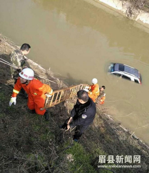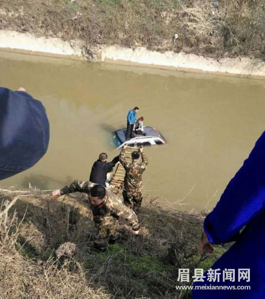 2月16日,宝鸡眉县眉站所接群众报称有一辆小轿车掉进西宝中线车圈村引渭渠中,车顶站有两人寻求救助,民警迅速出警,途中及时联系消防队,到达现场后安抚两人情绪,配合消防、交警成功将两人救助。