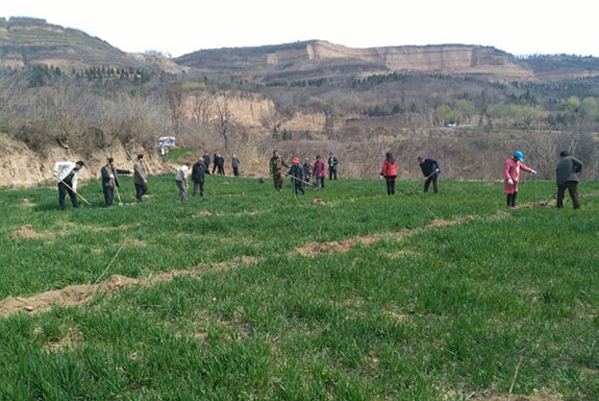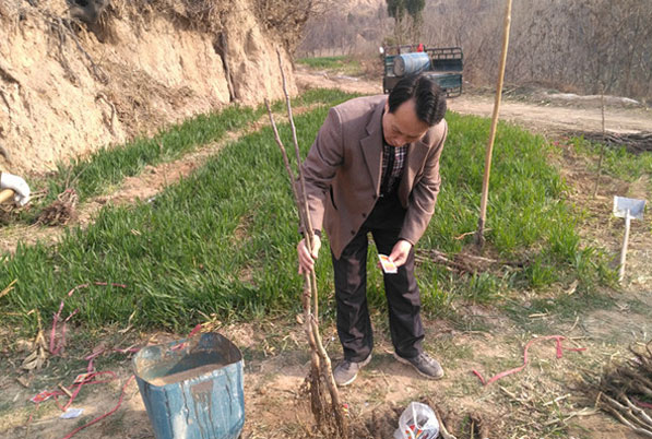 眉县是全国最大的猕猴桃最佳优生区,但由于部分沿山和塬台地区并不适宜猕猴桃生长,眉县林业部门决定把沿山地区作为核桃的主要种植区。在常兴镇马家村栽植现场记者看到,农户们正在技术人员的指导下挖坑、栽树、填土,一切都在有条不紊的进行。眉县林业工作站技术员李昌林介绍说:“从去年冬季开始,我们就组织技术人员从杨凌等地调用清香、辽核等大规格的苗木进行统一栽植,指派技术人员现场进行指导,统一栽植、浇水、覆膜。”