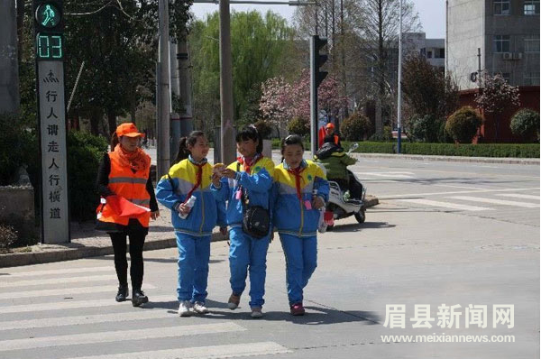 3月31日,在眉县公安局交管大队积极倡导下,来自眉县萤火虫公益团队的16名文明交通志愿者到眉县城区交通流量较大的美阳街首斜路口、美阳街昌隆路口、平阳街迎宾路口、安阳街首斜路口四个主要路口路段,在交通民警现场指导下,手执小红旗,对行人闯红灯、摩托车超速、三轮车违法载人等违法进行劝阻、纠正,借此引起交通参与者对文明交通的尊重和对自身安全的重视。