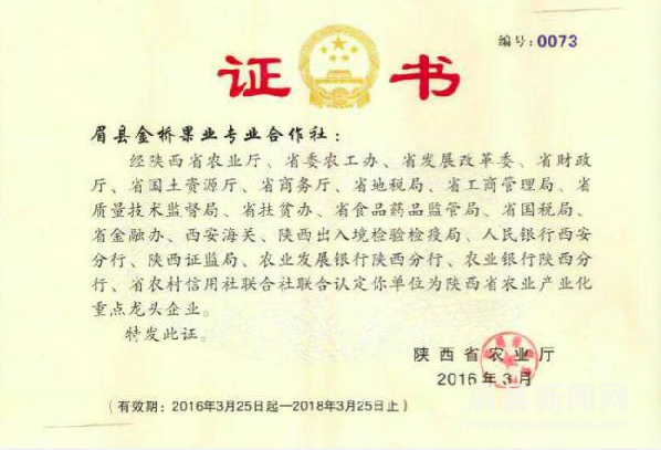 在太白山脚下、渭水河畔有一家专门从事果品生产、技术培训与服务、农资配送、储藏销售为一体的果业公司,它就是陕西金桥果业有限公司,金桥果业经营场地56亩。建有猕猴桃气调冷库96座,总储能10000吨,自动化分捡线2条,年产销猕猴桃等水果20000吨,覆盖眉县8个乡镇156个自然村,带动辐射2000余人脱了贫困帽子。年外贸出口能力可达10000吨, 创汇30万美金。