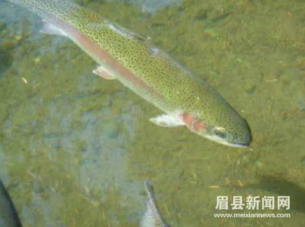 虹鳟鱼:原产北美洲太平洋沿岸,美国加州山涧中,喜栖于清澈无污染的冷水中,以食鱼虾为主,为高寒鱼类,只能在20℃以下的水温中生长,体上布有小黑斑,体侧有一红色带,如同彩虹,因此得名“虹鳟”。