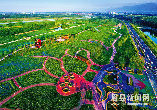 近年来,眉县坚持生态立县战略,突出绿色发展、科学发展的理念,构建形成了以秦岭、渭河两大区域为重点、以“六纵五横”道路景观为纽带、以“美丽乡村·文明家园”为支撑的生态新格局,打响了“山水眉县、创意田园”的生态品牌,有力推动了县域经济社会转型发展,特别是抢抓全省渭河综合治理的重大机遇,投资12亿元,积极实施渭河“百里画廊”建设工程,把渭河安澜,产业跟进,旅游带动,民生福祉相结合,打造霸渭关中文化生态区、十里花海等“一区五园六带”景观长廊。