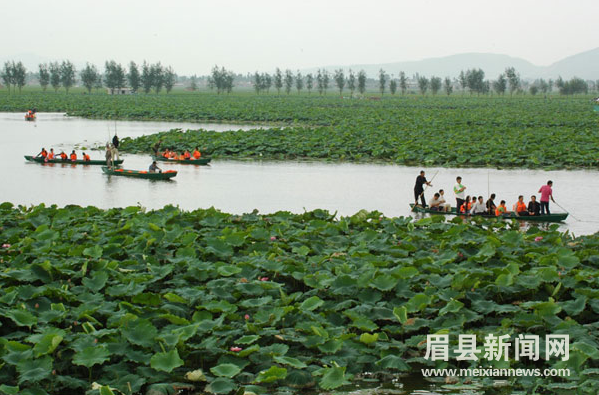 荷花生姿,碧叶连天。近日,来自省内外的千名游客在登临太白山一览众山小,憩息红河谷恬静之后,徜徉在眉县千亩荷塘的荷花碧叶间,赏荷花、拍美景,流连忘返。深感神清气爽,雅兴逸飞。截止今年5月,眉县4年间共投资6.3亿元,建设了11个国家级湿地公园,让当地老百姓在家门口享受到公园一样的生活,使眉县的后花园更美丽多姿。