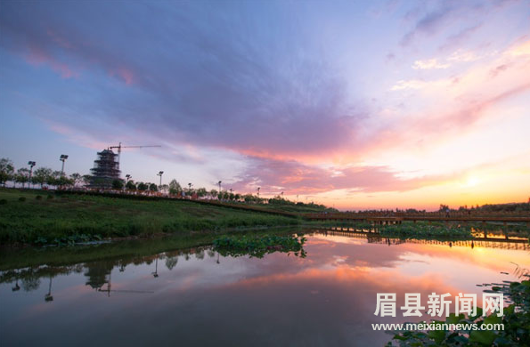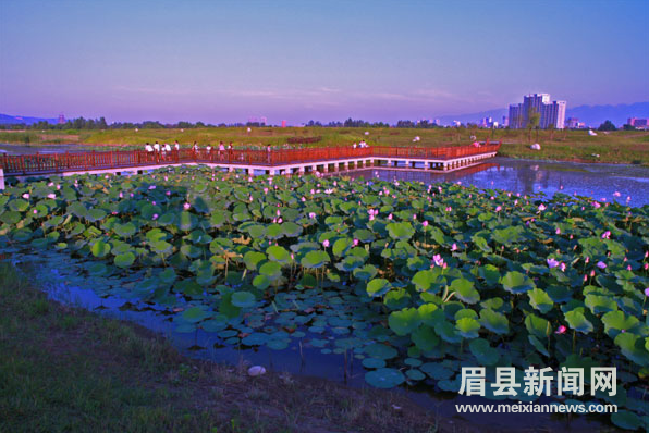 其中,投入6.3亿元建成了槐树林风情园、渭河湿地公园、太白湖湿地科普宣教区、西柿林湿地保护保育区、槐泉湿地公园、千亩荷塘、蒹葭台、平阳阁等生态景观11处,恢复湿地、水面5460余亩,配套跟进沿途乡村旅游产业,渭河沿线已经成为集旅游、休闲、健身、消费为一体,横贯县境的生态和产业中心带,打造了一个天蓝水清、鸟语花香、岸绿景美、诗情画意的生态观光区,形成了“渭河最美看眉县”的生态品牌。汤峪龙源国家湿地公园总面积2836公顷,分为保护保育区、恢复重建区、宣教展示区、合理利用区和管理服务区五个区。其中,保护保育区和恢复重建区面积2217公顷,湿地面积 2331公顷。公园以“保护—利用—提高”理念为前提,着力打造西北干旱区保护与恢复示范工程、湿地科普宣教基地、湿地生态文明及湿地先进文化建设典范,对改善水质、生态和居民生活环境具有重要意义。