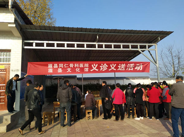 2017年11月13日,眉县文化馆联合眉县同仁骨科医院一早便来到眉县尖咀石村村委会大院,为广大村民展开义务诊疗,并免费发放药品。