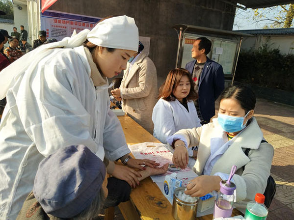 眉县同仁骨科医院此次共派来十多名医护骨干人员,为乡亲们开展测血糖、量血压、B超、骨密度测定、骨病检查等多个检查项目,回答村民咨询的问题,并对症下药,为大家免费送上治疗药品。