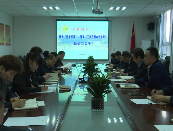 “园区讲坛”第一讲以“聚力四个发展,落实三高五新六个提升,我们怎么办”为主题,要求管委会全体干部职工围绕自身工作中存在的问题和原因分析、整改措施和努力方向、对园区运行发展的建议三个方面进行交流发言,为园区发展建言献策,助推园区在“整体环境、干部形象、素质能力、服务保障、工作标准、执行落实”六个方面得到全面提升。