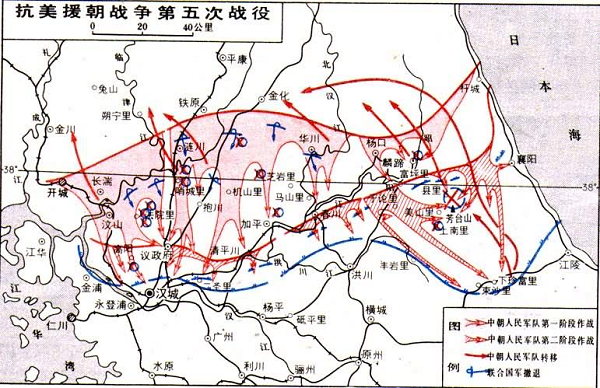 【抗美援朝第五次战役作战图和英勇无畏的中国人民志愿军将士】