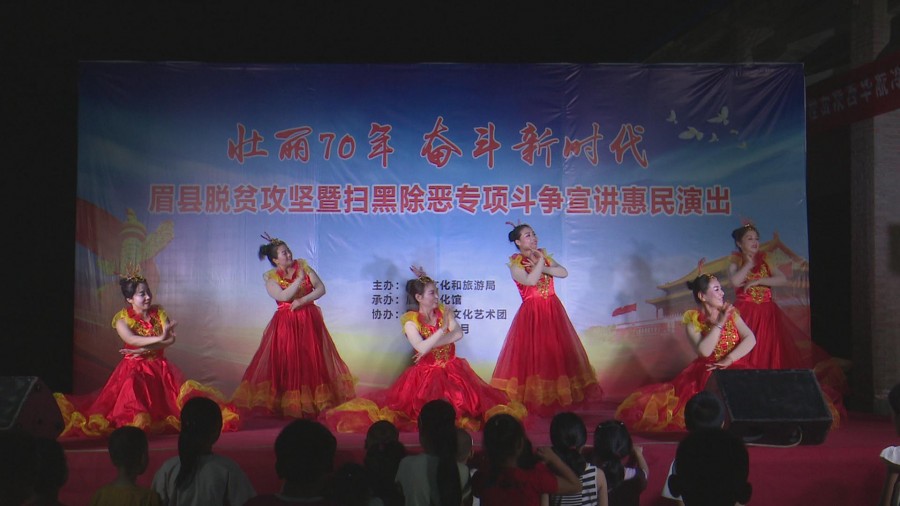 7月5日晚,由眉县文化和旅游局主办,眉县文化馆承办的“壮丽70年,奋斗新时代”眉县脱贫攻坚暨扫黑除恶专项斗争宣讲惠民演出走进营头镇万霞村,为村民带去丰富多彩的文艺节目。