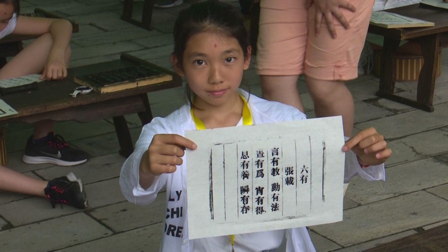 法国巴黎三语宝贝学校学生赵恩娜高兴的说:我很荣幸今天能来到横渠书院,学习中国文化体验活字印刷,能给法国的爸爸妈妈带去一份特别的礼物。